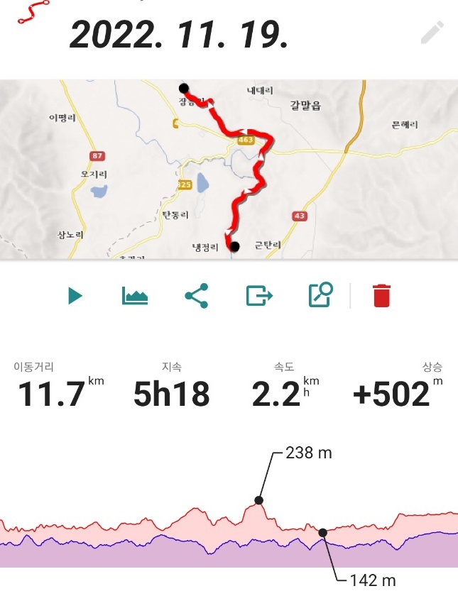 약 1Km 왕복2Km 이길 경사가 좋습니다