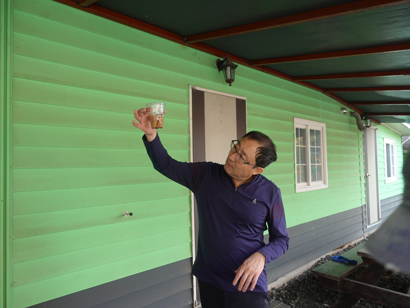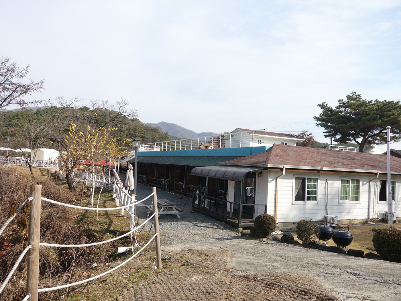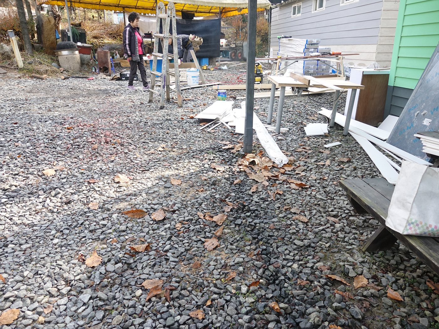 공사중인 팬션 앞마당에 도착합니다